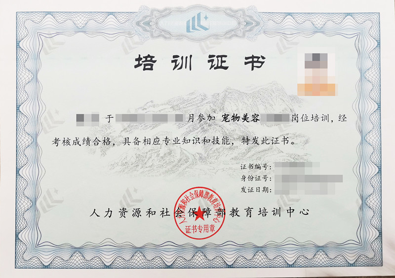 在学校考试合格后,除了学校自己的结业证书外,还由人社部教培中心颁发宠物美容培训证书,可以在网上查询到的。